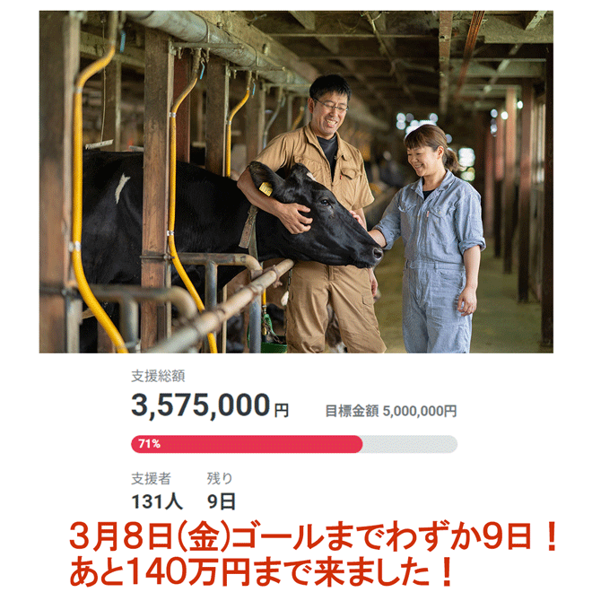そして、目標金額まであと142万円です。オールオアナッシング方式ですので、なんとしても、目標を達成して、ご支援のみなさまのご期待に添えたいとの強い想いです。
