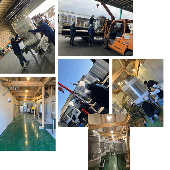 今日は、600リットルサイズのタンク8基、いろんな設備を含めて約4トン。いろんな方たちに搬入作業を手伝ってもらい、港でのトラックへの積み込み、移動、そして無事、ブルワリー内に鎮座できたこと、ホッとしてます。