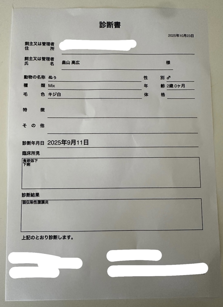 【FIP 猫伝染性腹膜炎】治療費のためにご支援お願いします!