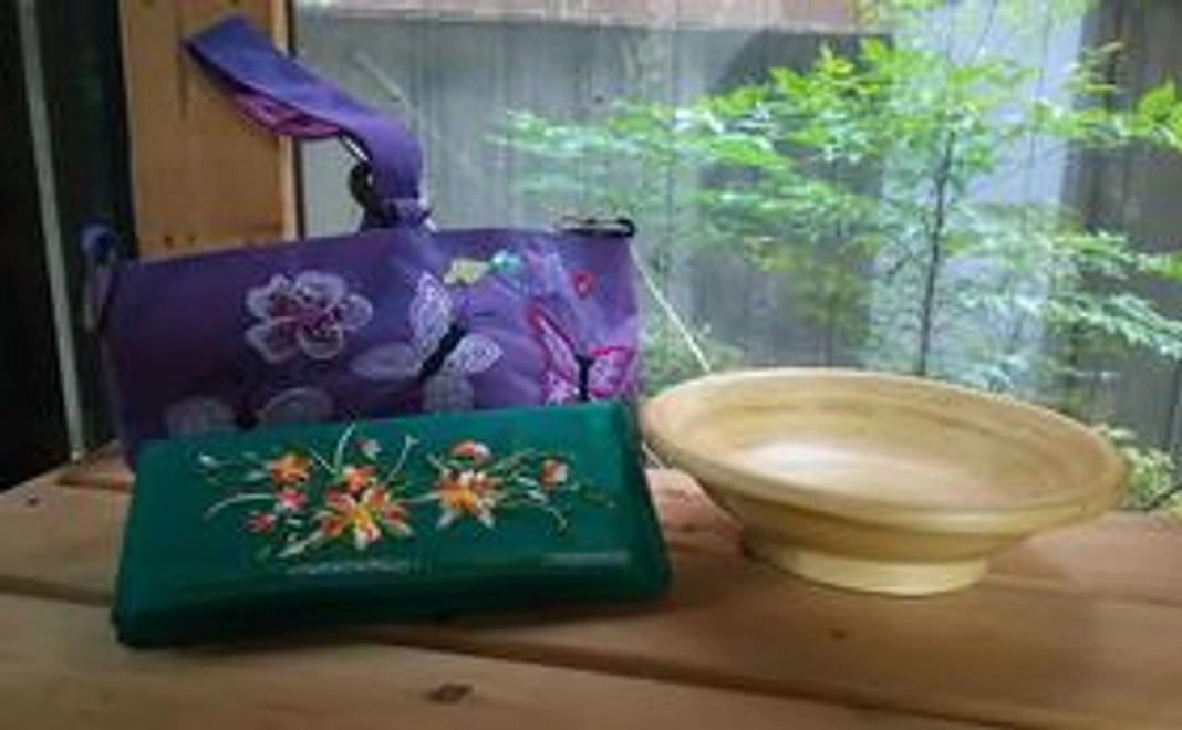 4)ベトナムのフェアトレード商品(バンブーディッシュ 竹でできたお皿もしくは、刺繍小物1点をお選びしてお送りします)