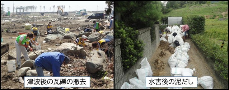 害が発生した際は、国内を中心に迅速に当団体職員ならびに災害ボランティアの方々が被災
