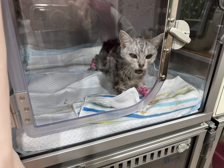 まだ未完成のフェイス病院のICUに楽天ちゃんは入りました。その時の様子は私共のYouTubeちゃんねるにて生配信もさせて頂きました。