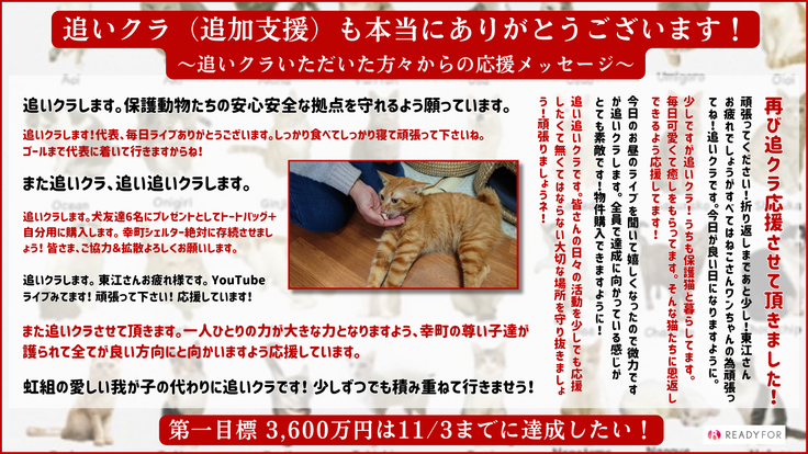 追いクラ(追加支援)もたくさんいただきありがとうございます!第一目標達成へあと少し!