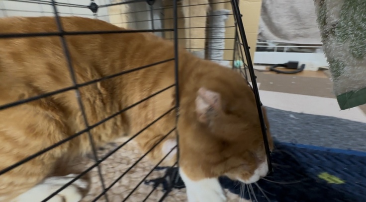 夕方帰宅すると怪我保護してる『おっさん』がケージから脱走🤭