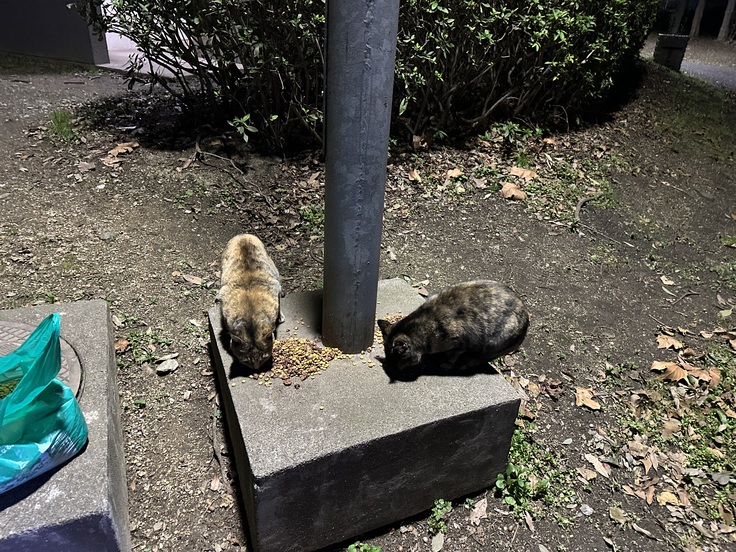 今日の餌やりは自転車で行ったのですが防寒着着てると汗をかきました💦