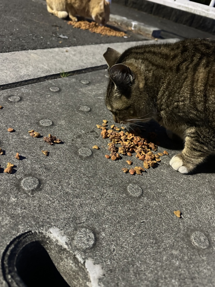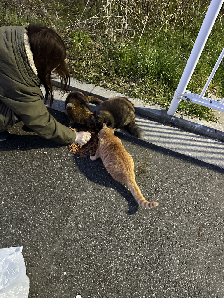今、野良ちゃん達の餌やりしてるのだけど一昨日からララちゃんって名前の子が口の中が痛いみたいでご飯を食べにくそうにしてます💦