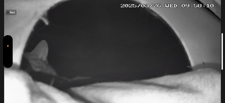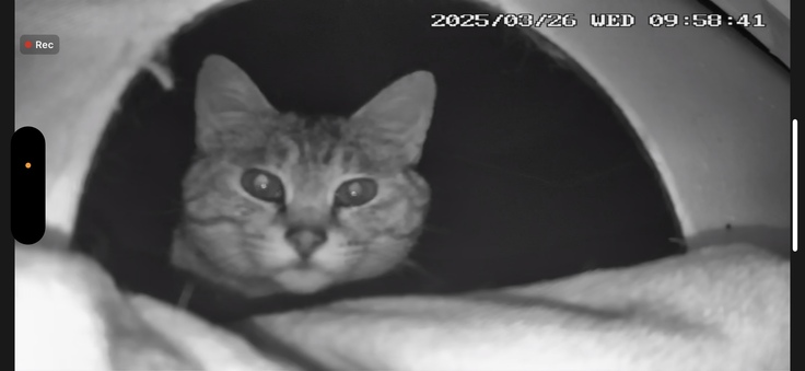 もうすぐ家を出ないといけないのですが、野良ちゃんだけにあまり覗いたりするのは良くないと思いカメラで様子を見ています