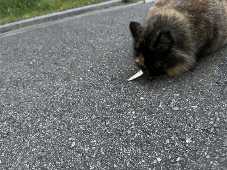 今日の野良ちゃん達の餌やりは、イワシをオヤツに持って行きました🐟