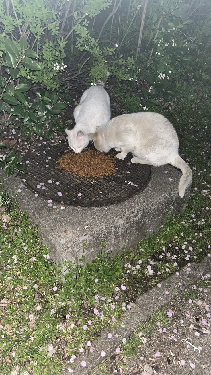 野良ちゃん達の餌やりは昨日は相方にお任せして今日は仕事合間に早めの時間であげてきました