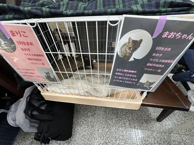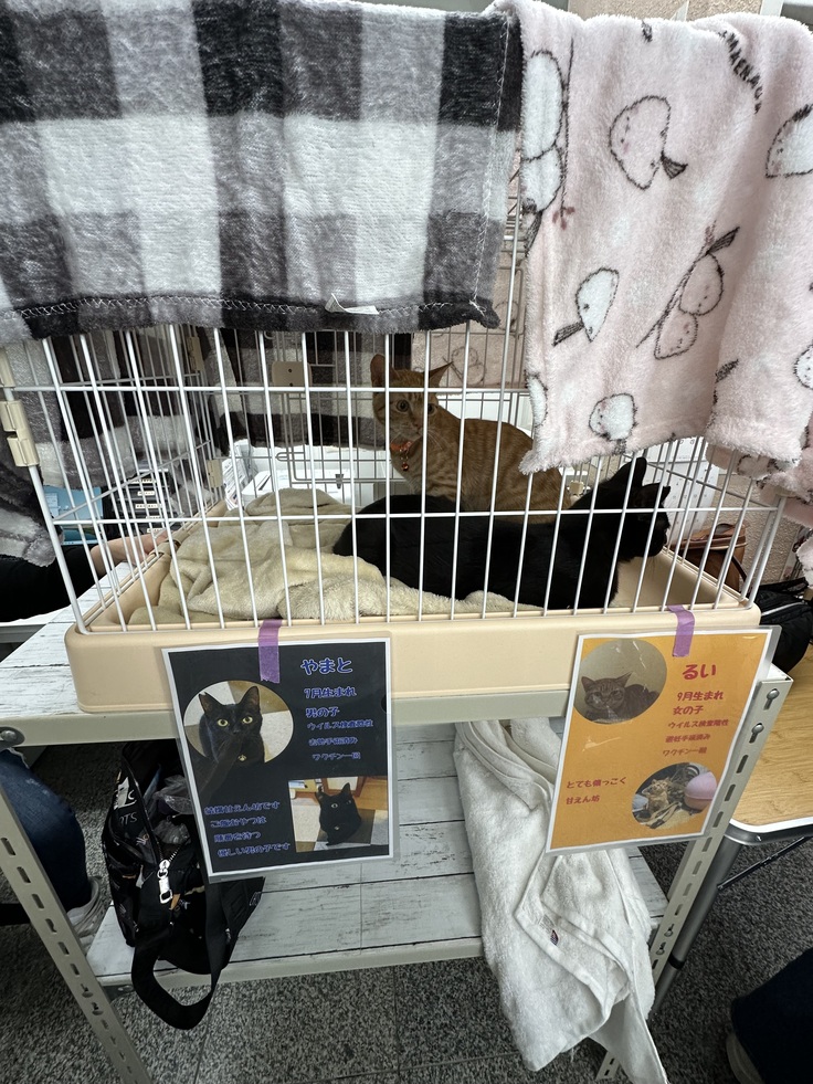 今日はお昼にまりことまおとるいとやまとの4匹を譲渡会に連れて行きました