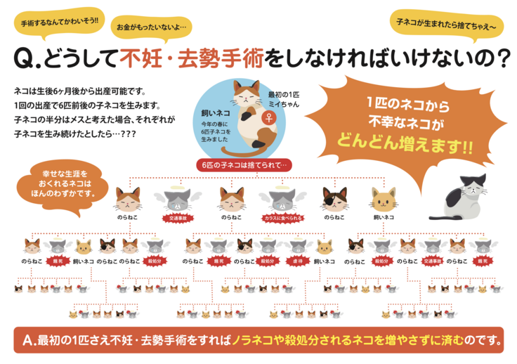 そのため、一度に多くの猫の不妊去勢手術を行い、不幸な命が生まれることをストップすることがとても重要なのです。