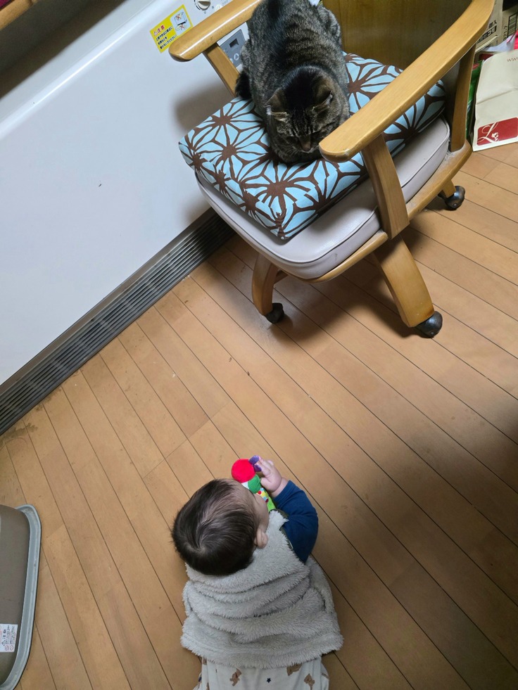 朝から雪まじりの雨が降っていて寒かったので、暖房の前でじっとしていました。