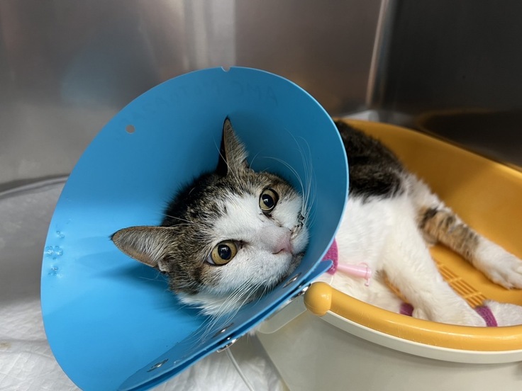 日本一の動物病院と名高い日大動物病院を受診。改めて、手術は絶対に出来ないと診断される。今後は緩和ケアでどれだけ苦しみを取り除いてあげられるか、どれだけストレスない余生を過ごせるを考えて欲しいと先生から伝えられる。推定年齢5〜10歳程度とのこと。