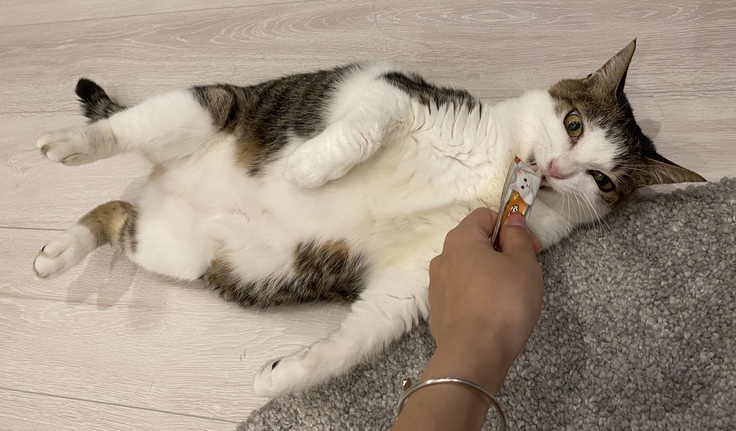 野良猫で推定年齢1〜3歳の成猫で保護した割には人見知りもなく甘えっ子で、一緒の布団で寝たり、私たちがソファに居るとお腹の上に乗りたがったりするような子でした。