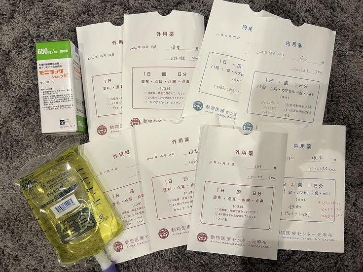 残りの5日間の自宅療養中は、5分の外出も避け朝から晩までにゃんこ先生の介護を行なっています。朝8時から夜24時まで1,2時間おきに薬やご飯を与え、この子が辛くないかどうか常に見守っています。正直、23歳の若者2人でみるには金銭的にも精神的にもキツい状況です。