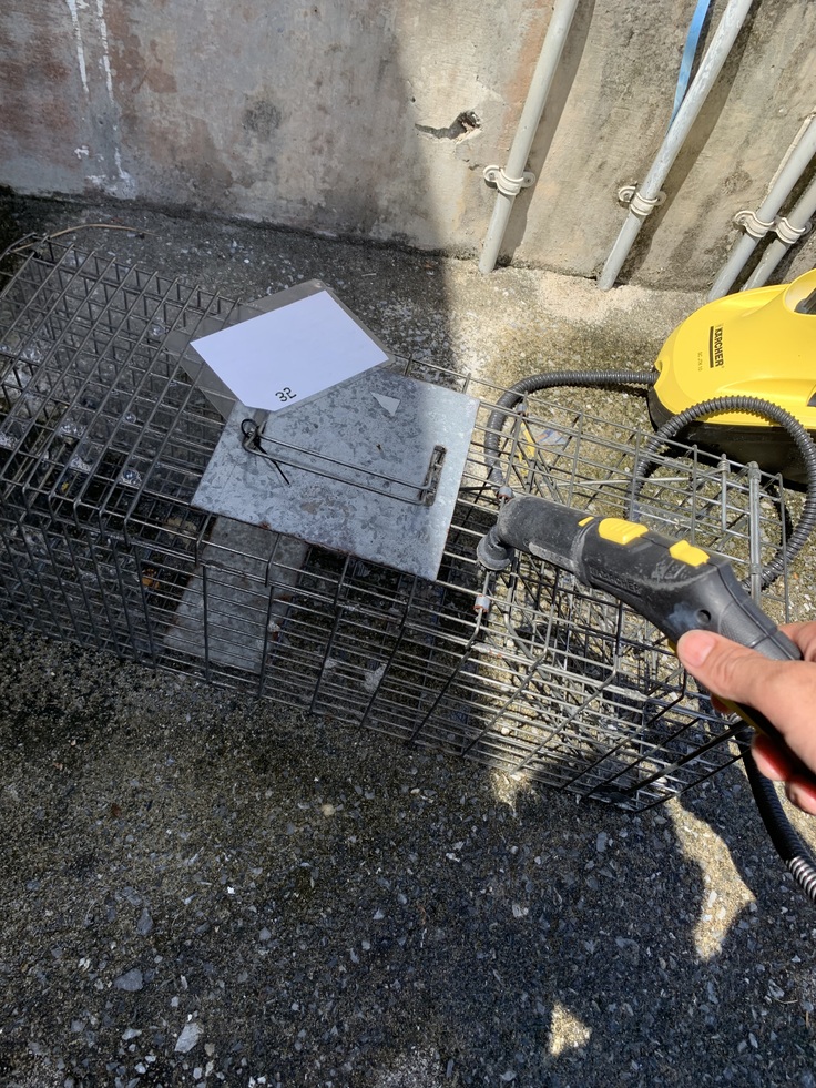 手術に並行して、使用した捕獲器を洗浄、液体消毒、熱湯消毒を行い夜の捕獲に備えていきます!