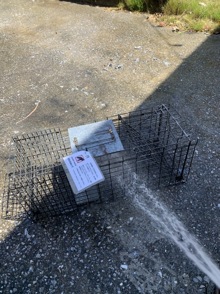 日中は暑いので、夕方の日が暮れてから捕獲器を設置して、捕獲の追い込みです!