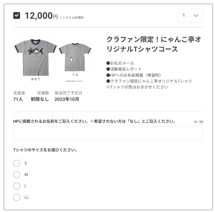 クラファン限定!にゃんこ亭オリジナルTシャツコース|1万2千円