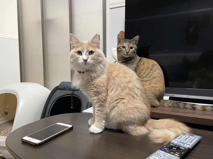 しかし、オーナー様にはトライアル中だけでなく正式譲渡の後までも、どんなに小さなことでも困った時はご丁寧にアドバイスを頂き、猫2匹人間2人で少しずつ試練を乗り越えてきました。