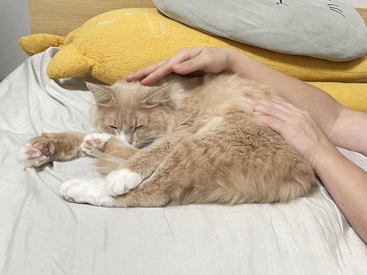 現在のむぎはまさかの「なで放題猫」となっており、昔のむぎを知る方はかなり驚かれるかと思います。