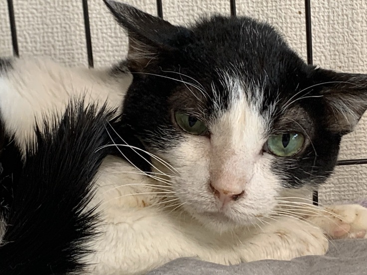 現在は上板にゃんこ亭でゆっくりと過ごしてますが、腎臓機能低下がみられ、ケアフードなどによる食事療法を続けてます。