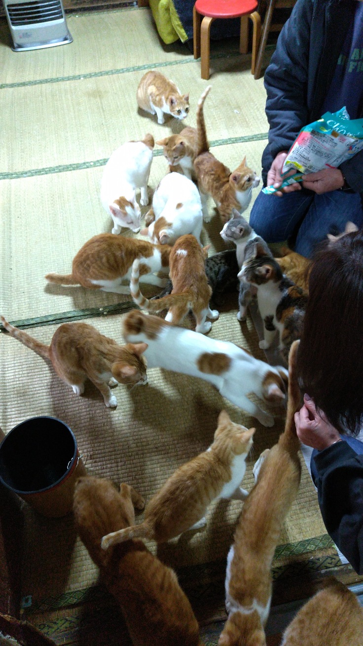 この子たちも大半はおうちに行くことが出来ましたがてんかんを発症してしまった子がいたため仲の良い子と自宅に連れ帰り投薬をしています。現在H宅には18匹が暮らしています。ゆくゆくは里子に出したいと思っていますが、お金が無いのに猫を手放したくないとまた難色を示しているため物資の援助をして猫たちの栄養状態をサポートしながら対話を続けています。