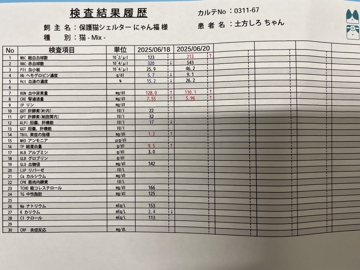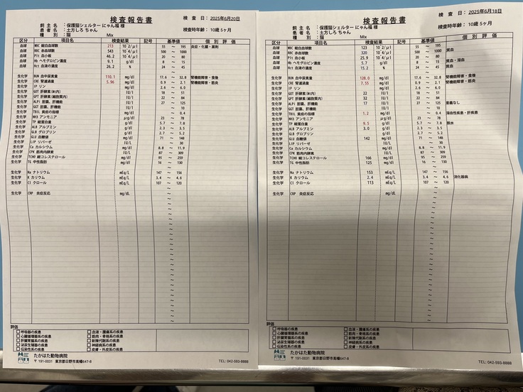 腎臓等の数値が悪いのでしばらく入院となりました