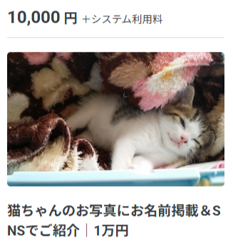 おすすめのリターン【猫ちゃんのお写真にお名前掲載&SNSでご紹介|1万円】をご紹介させていただきます。