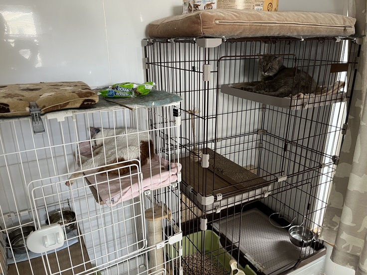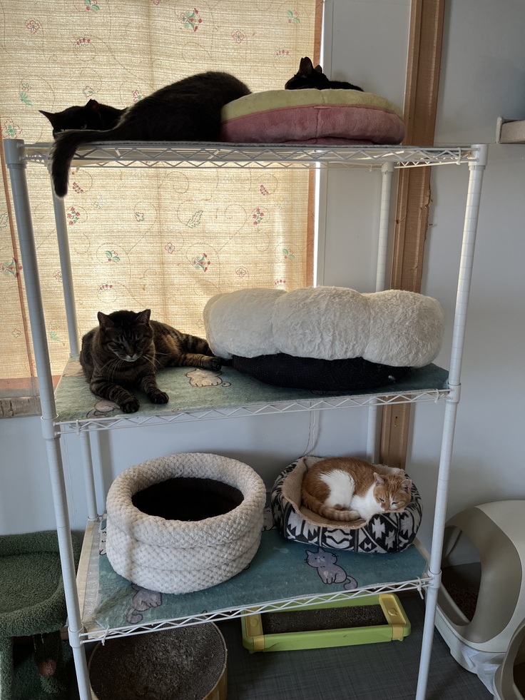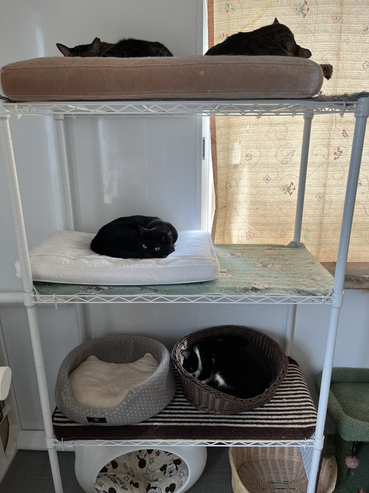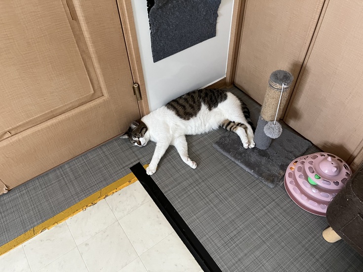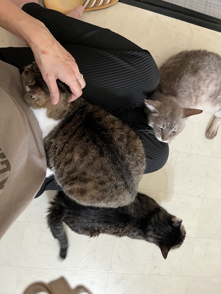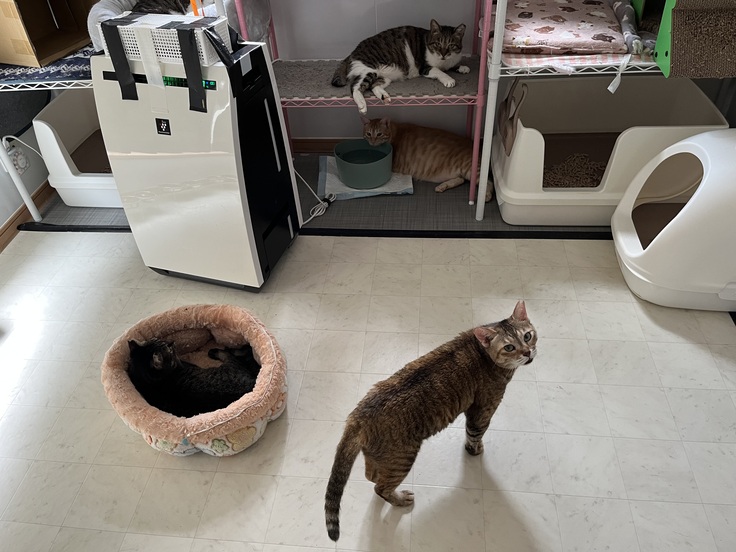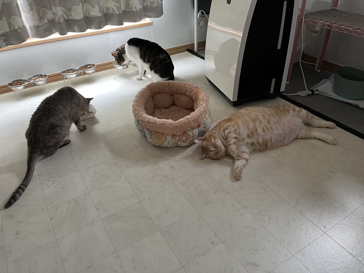 お部屋をボラさんたちにキレイ✨にお掃除してもらい、猫たちはまったりしています🐈