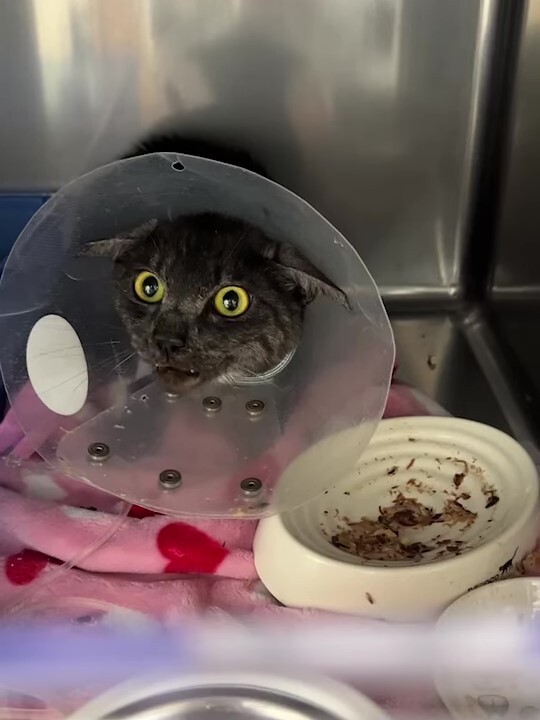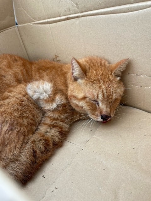 そして、このクラウドファンディング中に、ボロボロの状態の猫に出会い、病院で高齢で様々な病気があることがわかり、保護いたしました。その猫は「大吉くん」と名付け、現在は投薬、療養中です。皆様からたくさんの支援物資をいただき、大変助かっております。本当にありがとうございます。