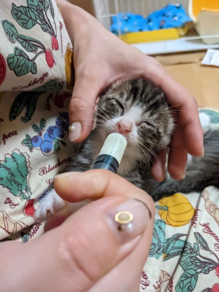 また母猫が乳飲み子の面倒を見てくれない場合や、子猫の生育状態が良くない場合には、子猫用のミルク(人工授乳)が必要です。TNRが進んでいない地域では、このような事例が多く見られ、子猫の成長を助ける粉ミルク(1缶2000円以上)、哺乳器が必要となります。成猫には、手術を行う前に十分な栄養を摂ってもらうため、良質なフードが必要です。