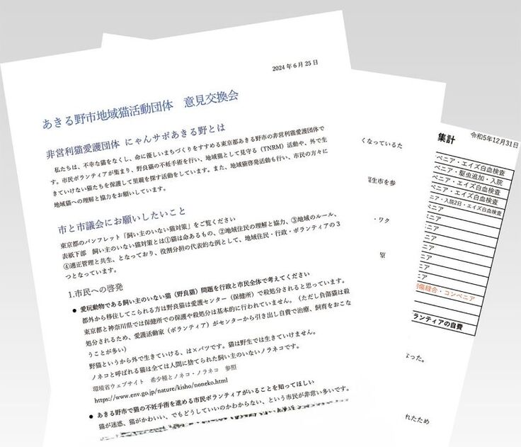 あきる野市は自然豊かな田舎町であり、飼い主のいない猫に対する不妊去勢手術の助成金がなく、保護猫の医療費の一部、飼養費はボランティアが負担しているのが現状です。
