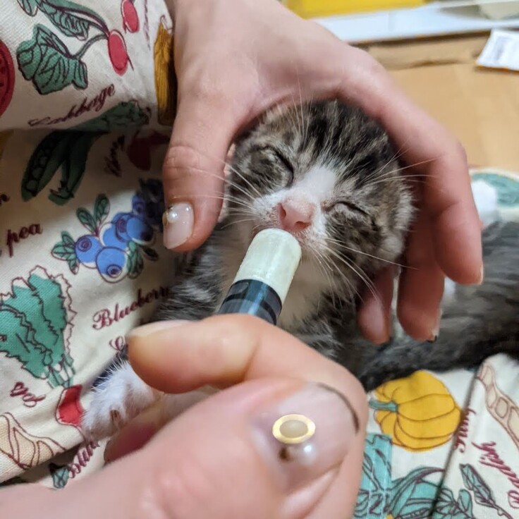 預かりボランティアとして発足前より交流がありました。2人のお子さんの子育て中、忙しい中、ご主人お子さん達も協力して子猫を育ててくれています。