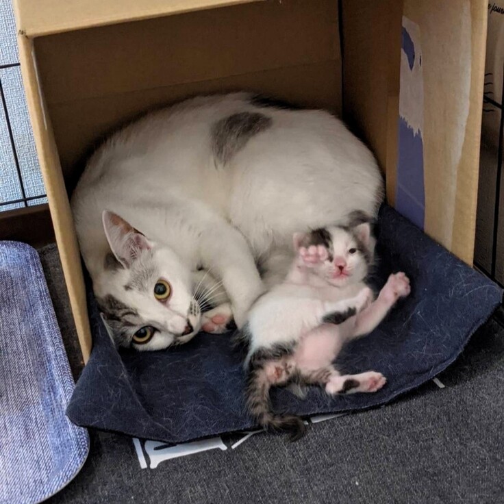 現在は子猫と一緒に保護したママ、結優(ゆゆ)ちゃんのお世話をしてくれています。