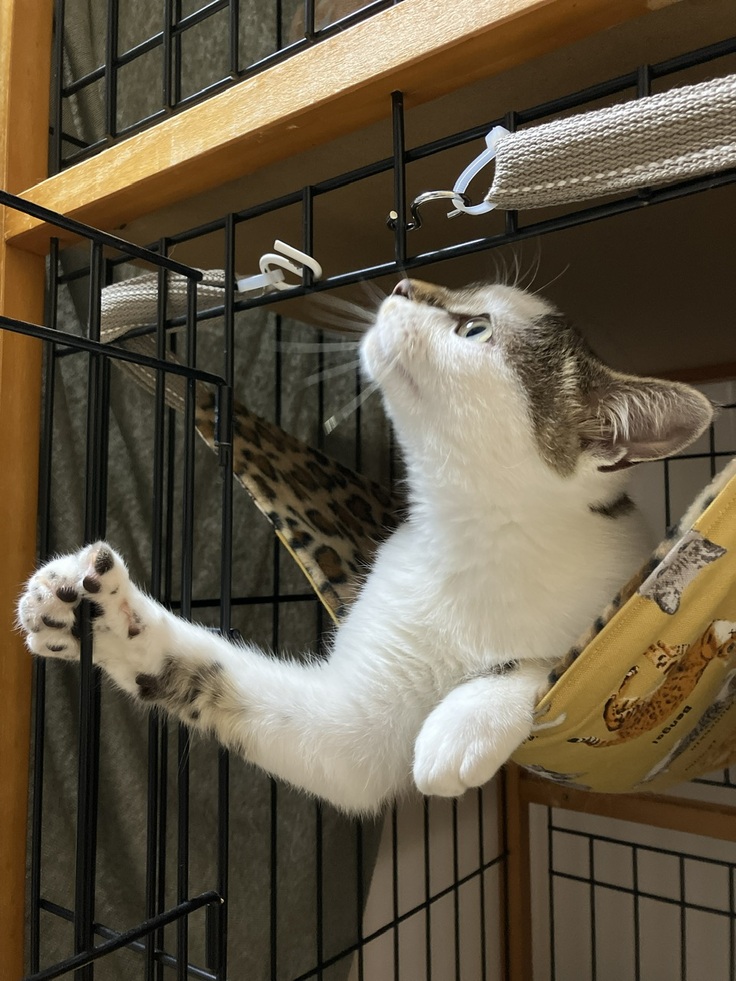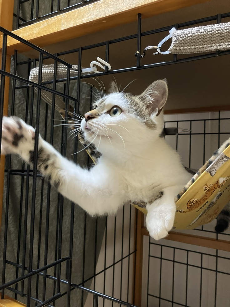 まだ人が動くと少し怖がりますが、好奇心旺盛な子なのであともう少しです!