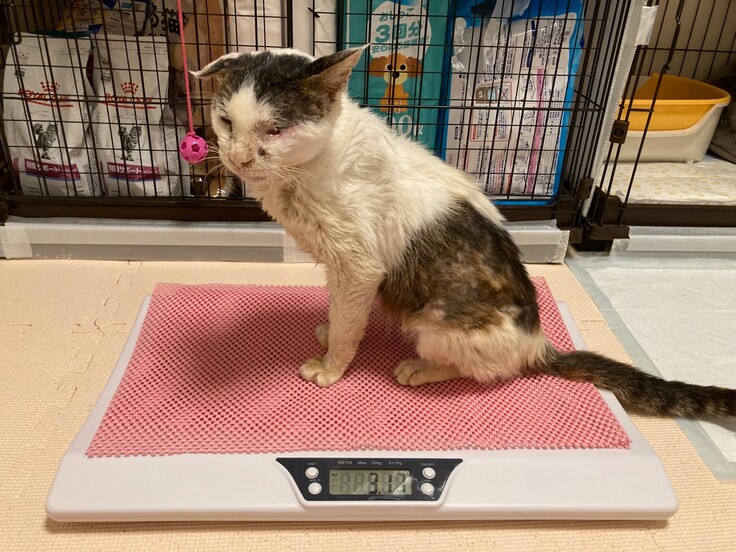 大吉君はとても大変な状態で保護されましたが、いまボランティアさんや獣医さん、応援くださる皆様のおかげで温かいお部屋で美味しいものを食べて過ごせています。
