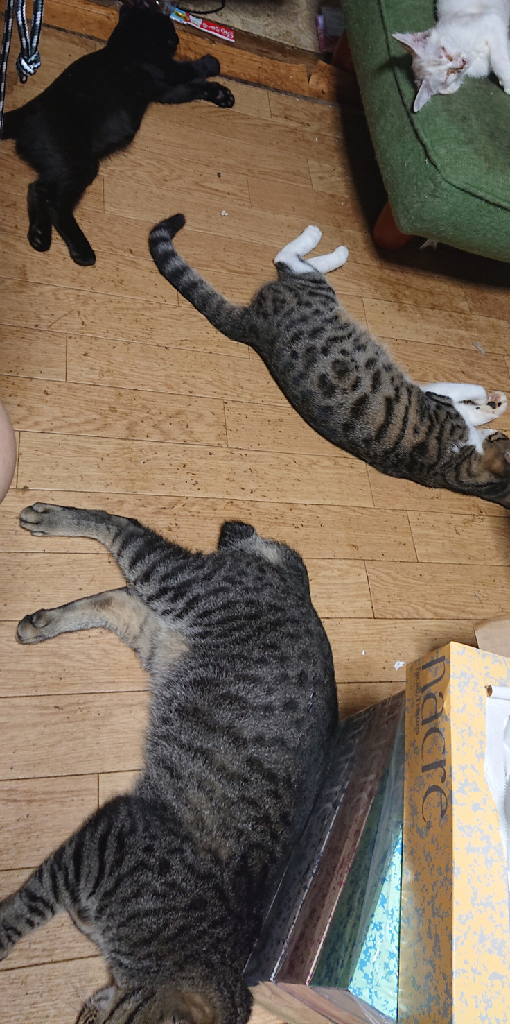 仔猫たちを呼び寄せ、遊んでる姿を誇らしげに眺めていた姿が印象的でした。