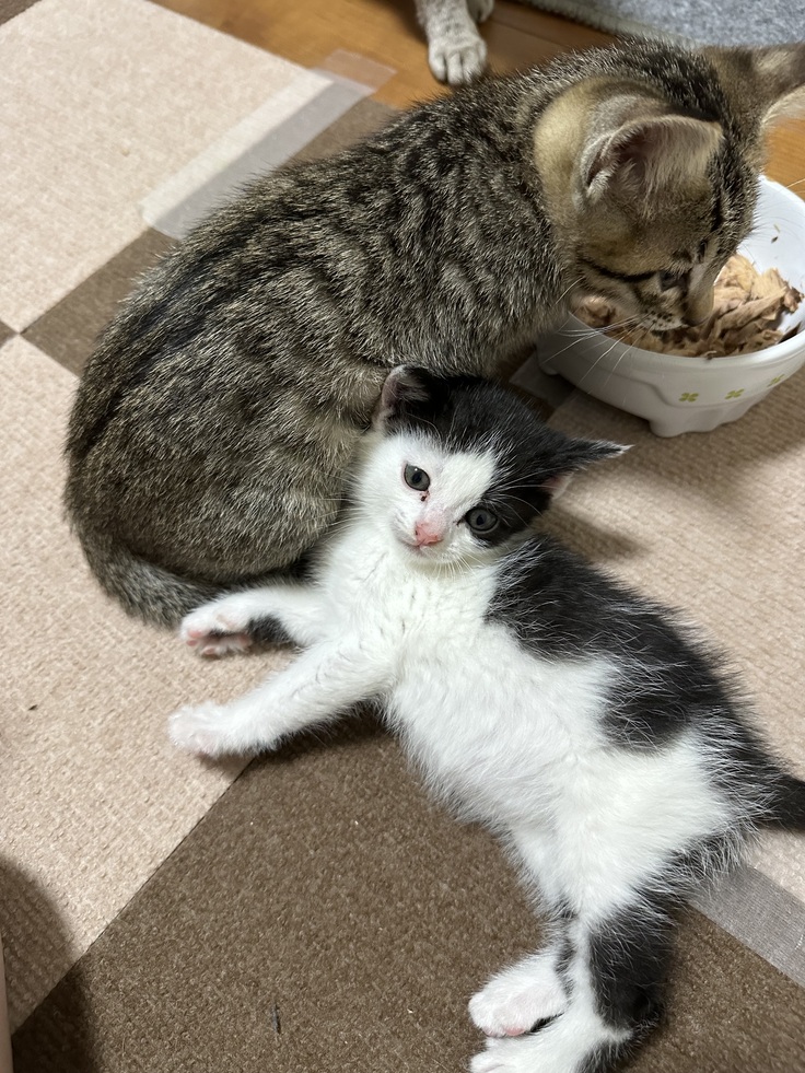 生後1ヶ月ほどの赤ちゃん、今保護してる母子猫の母親ゆきちゃんがすぐに受け入れてくれて母乳も飲ませてくれてましたが木曜日の昨日とても優しいご夫婦のおウチへお届けしてまいりました☺️