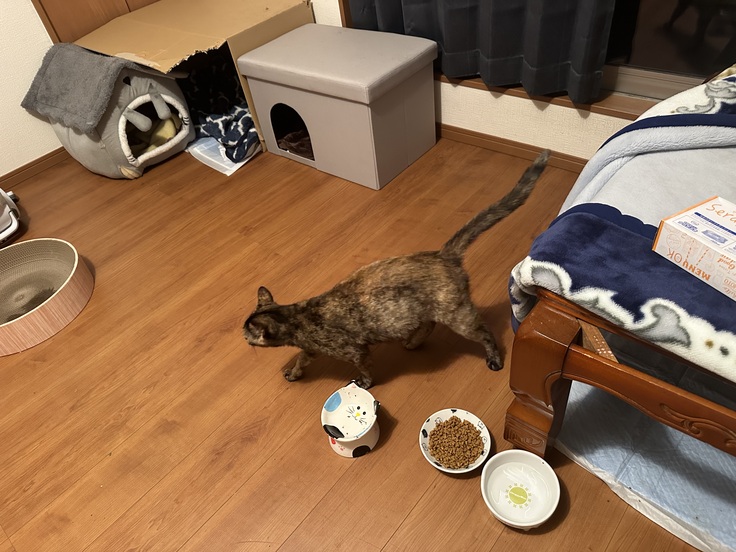 2階で保護しているぽんちゃん(妊婦)が今朝初めて撫でさせてくれました