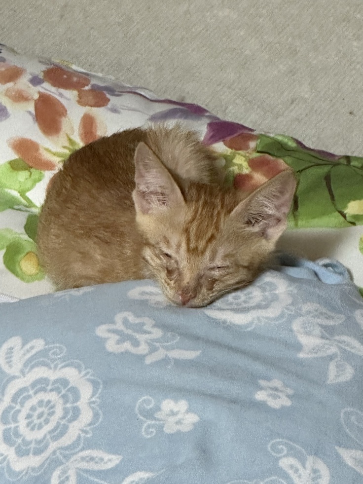 最近また1ヶ月になるかならない子猫を保護して猫風邪をひいているので治療始めています