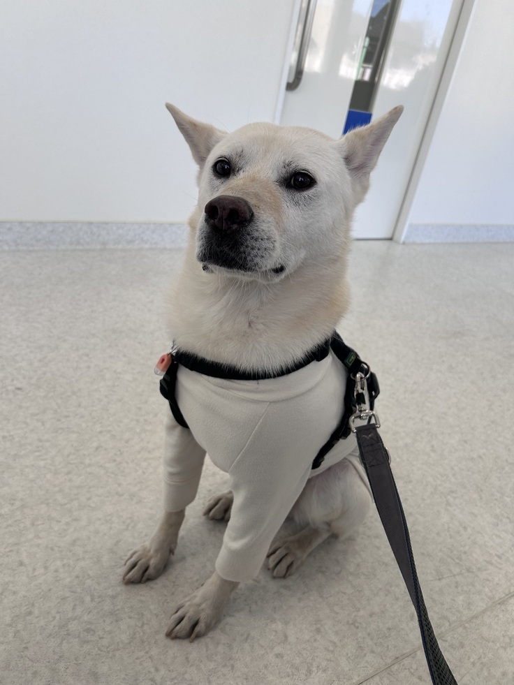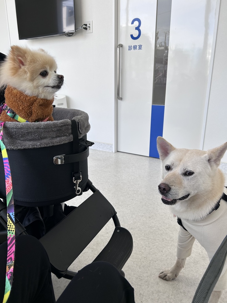 「僕は今日、クッキーの付き添いで病院へ行ってきました。待ち時間は公園やドックランで遊びました。クッキー、検査お疲れ様。帰って、クッキーと一緒にお昼寝しよっと。」
