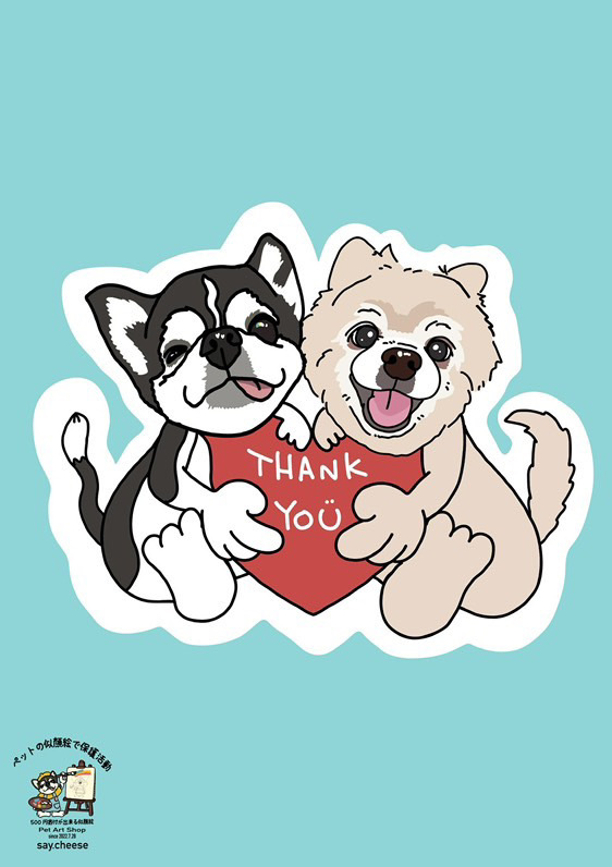 本プロジェクトにご支援いただいたことへの感謝の気持ちとして、ペットの似顔絵で保護活動をされている Say.cheese さん作画『クッキーがハートを抱きしめているシンプルで可愛いイラスト(感謝の気持ちを込めて)』をリターン。
