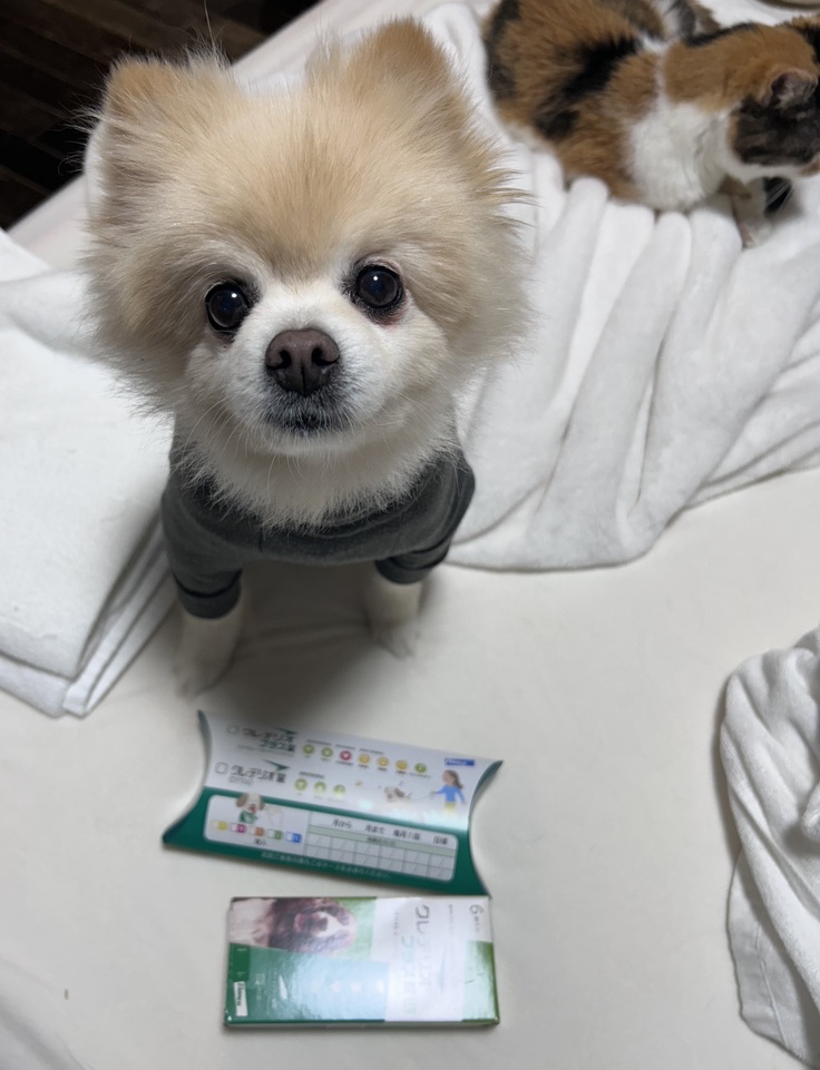 保護犬だけに感染の心配がありましたが、問題無かったので、今月からスノーボールと同じ駆虫薬、クレデリオプラス錠を処方してもらえることになりました。