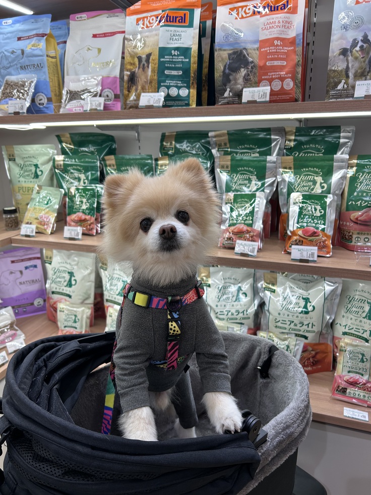 さてさて、日向ぼっこの帰り道、クッキーの食事を買いに行きました。