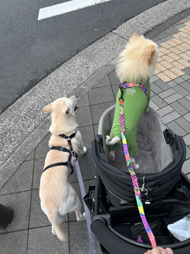 昨日の午前中は天気が良く、最近食べたいと思っていた和菓子や苺大福を買いに、翆江堂さんまで2匹も一緒に連れて出かけてきました。