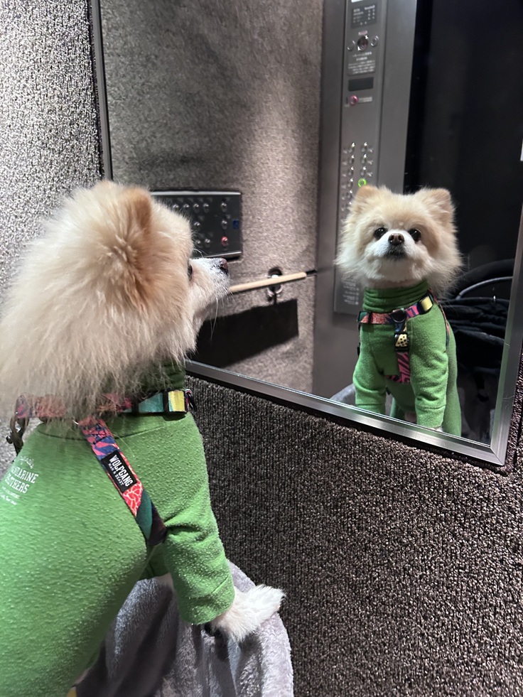 トイレの時間、カートから下ろしたクッキーはとても楽しそうにします。