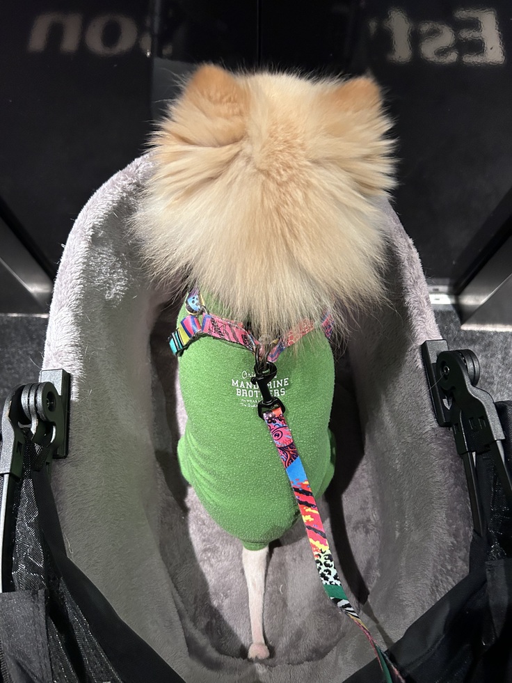 早く行こうと言わんばかりにエレベーターのど真ん中で扉が開くのを待つ、やる気満々のクッキーです。