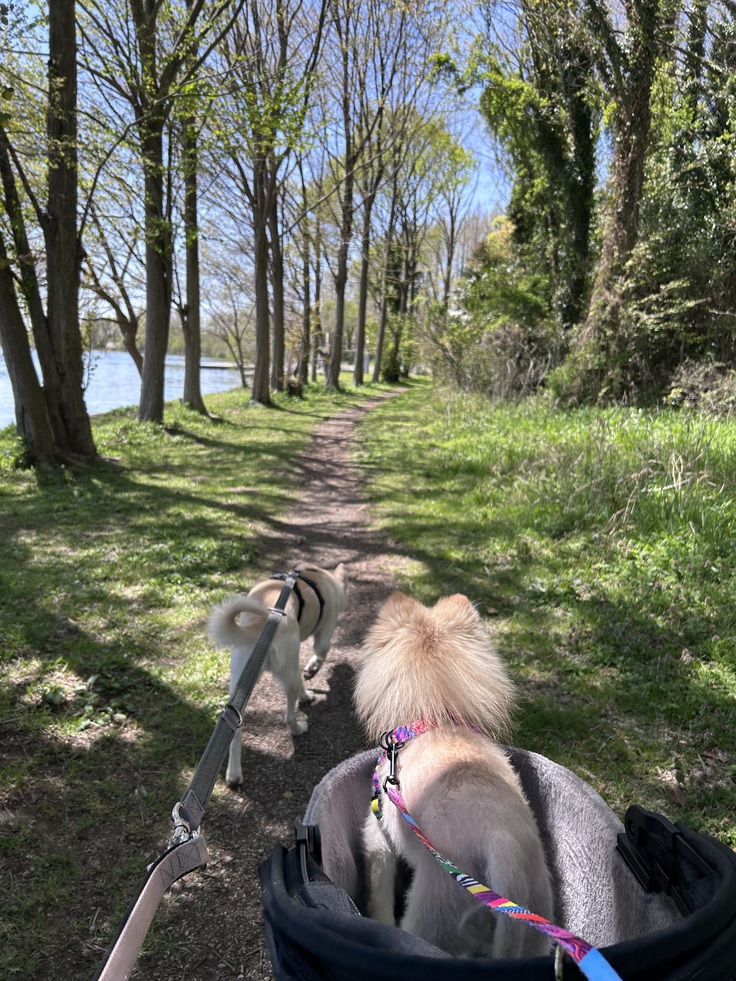クッキーも、木々や草花の揺れる音や鳥のさえずり、人の声や犬たちの動向に興味津々。