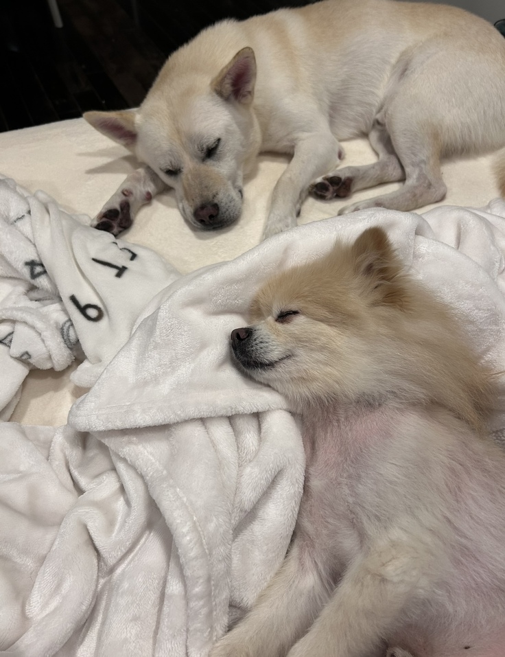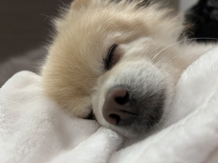 その半分を食べスノーボールの散歩をして帰宅したら、スヤスヤと…寝ているクッキーです。