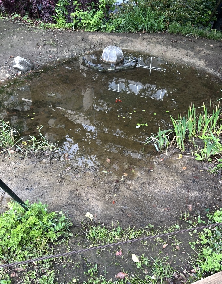 夏は、緑がかりブクブク、ドロドロになり、ほとんど干上がってしまう池なんです。